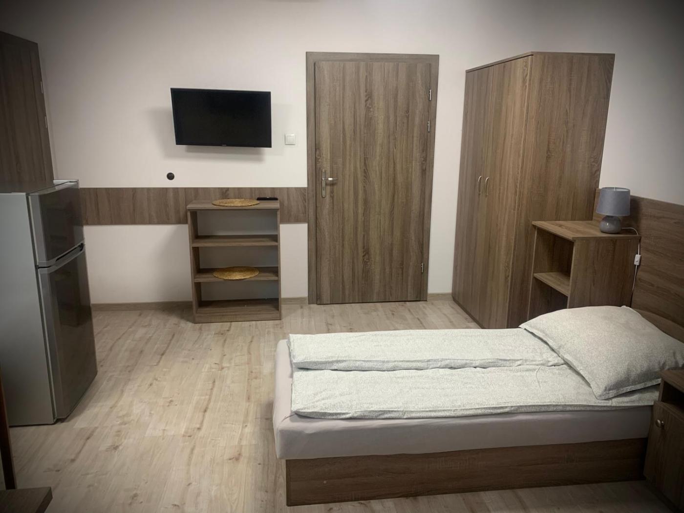 Pokój Trzyosobowy typu Deluxe. In the well-fitted kitchenette, guests will find a stovetop, a refrigerator, kitchenware and a microwave. The triple room features a washing machine and a coffee machine, as well as a private bathroom boasting a walk-in shower. The unit has 3 beds. Pokój Trzyosobowy - 3 osobowy. Powierzchnia pokoju ok.: 24 mkw. ;