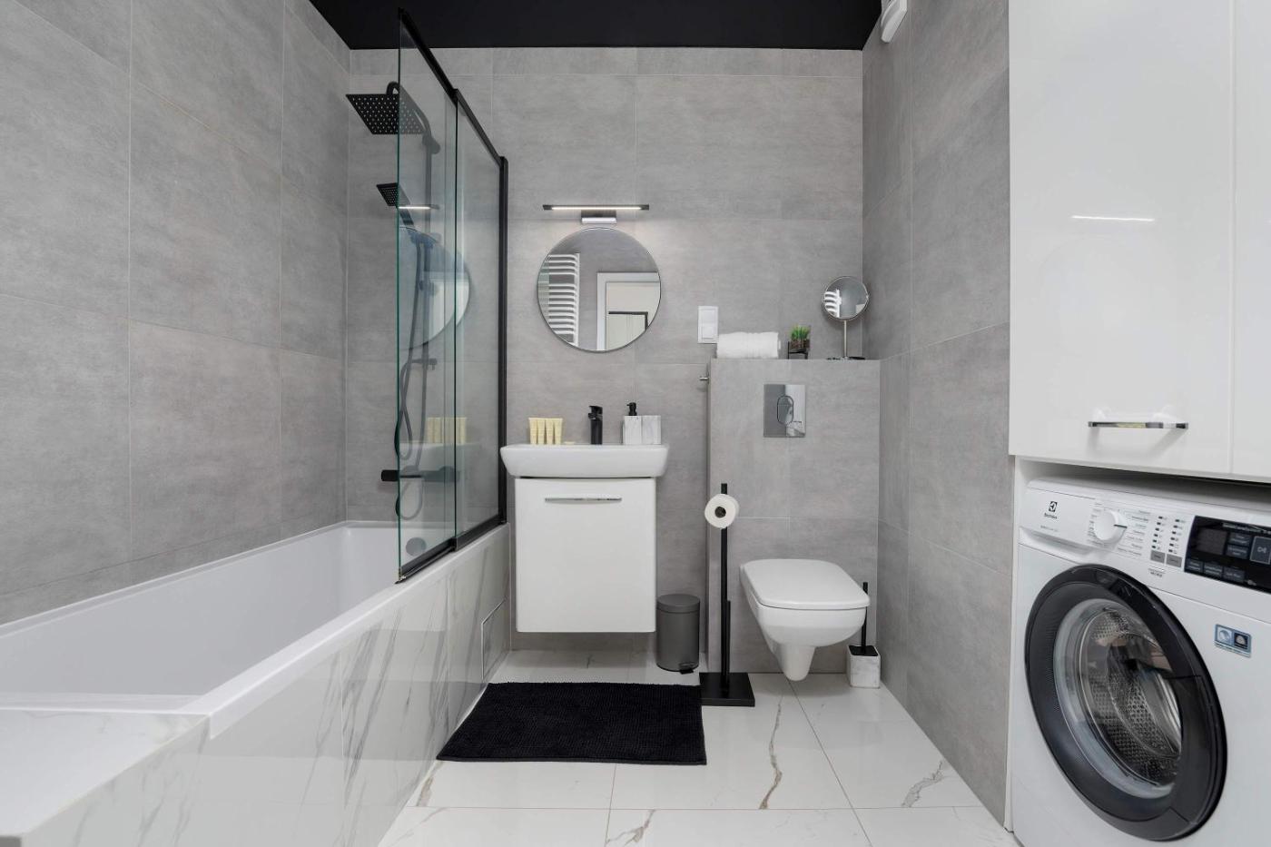 Apartament z 1 sypialnią i balkonem. Boasting a private entrance, this apartment includes 1 living room, 1 separate bedroom and 1 bathroom with a bath and a hairdryer. In the well-equipped kitchenette, guests will find a stovetop, a refrigerator, a dishwasher and kitchenware. Featuring a balcony with city views, this apartment also offers a washing machine and a flat-screen TV with streaming services. The unit has 2 beds. Apartament - 5 osobowy. Powierzchnia pokoju ok.: 47 mkw.