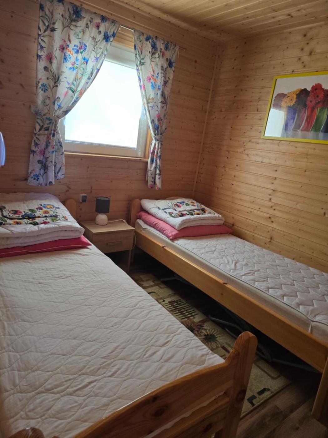 Dom z 2 sypialniami. This holiday home consists of 1 living room, 2 separate bedrooms and 1 bathroom with a shower. The holiday homes kitchen, which features a refrigerator and kitchenware, is available for cooking and storing food. The holiday home provides a dining area, a wardrobe, an electric kettle, a flat-screen TV, as well as lake views. The unit offers 5 beds. Dom wakacyjny - 6 osobowy. Powierzchnia pokoju ok.: 30 mkw.